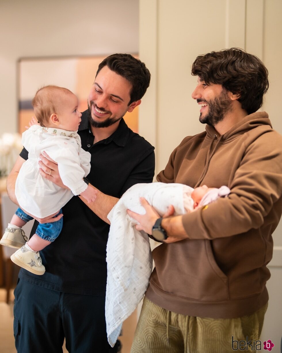 Primera imagen de las primas Iman de Jordania y Amina Thermiotis en presencia del Príncipe Hussein de Jordania y Jameel Thermiotis tras el nacimiento de la hija de Iman de Jordania y Jameel Thermiotis.