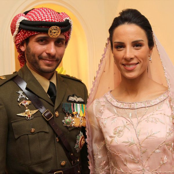 Los Príncipes Hamzah y Basma de Jordania posan tras su boda.