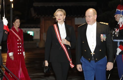 Los Príncipes Alberto y Charlene de Mónaco y la Princesa de Hannover en la gala del Día Nacional de Mónaco 2019.