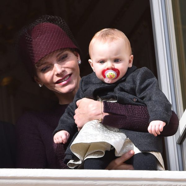 La Princesa de Mónaco con su hija la Princesa Gabriella de Mónaco en la celebración del Día Nacional de Mónaco 2015.