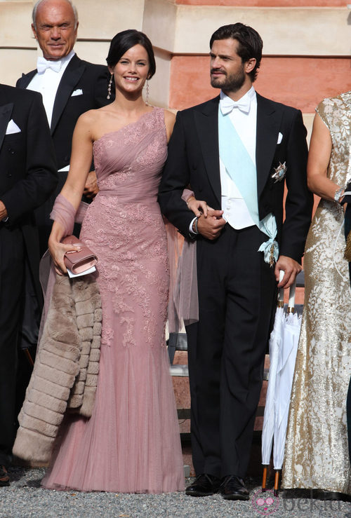 El Príncipe Carlos Felipe de Suecia y Sofía Hellqvist en la boda de su primo Gustaf Magnusson con Vicky Andren.