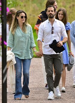 Los Príncipes Carlos Felipe y Sofia de Suecia cogidos de la mano en un concierto de Solliden Sessions durante sus vacaciones en Solliden.