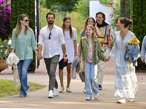 Los Príncipes Carlos Felipe y Sofia de Suecia, la Princesa Victoria de Suecia y su hija Estelle de Suecia, y su primo Patrick Sommerlath y sus hijas Chloé y Anäis en un concierto de Solliden Sessions.