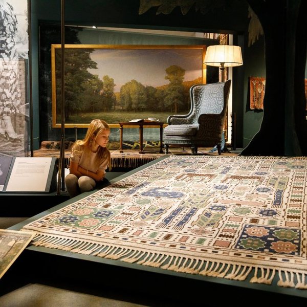 La Princesa Estela de Suecia durante su paso por una exposición de alfombras en el Palacio Real de Estocolmo.