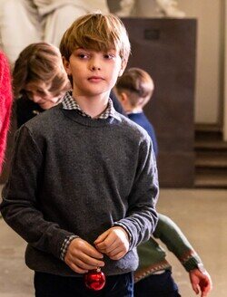 El Príncipe Nicolas de Suecia con un adorno navideño en la recogida de árboles de Navidad en el Palacio Real de Estocolmo.