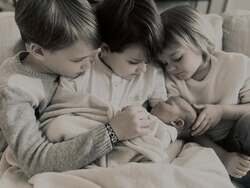 El Príncipe Gabriel de Suecia, el Príncipe Alexander de Suecia y el Príncipe Julian de Suecia mirando a su hermana Ines de Suecia en la primera imagen de los cuatro hijos de Carlos Felipe y Sofia.