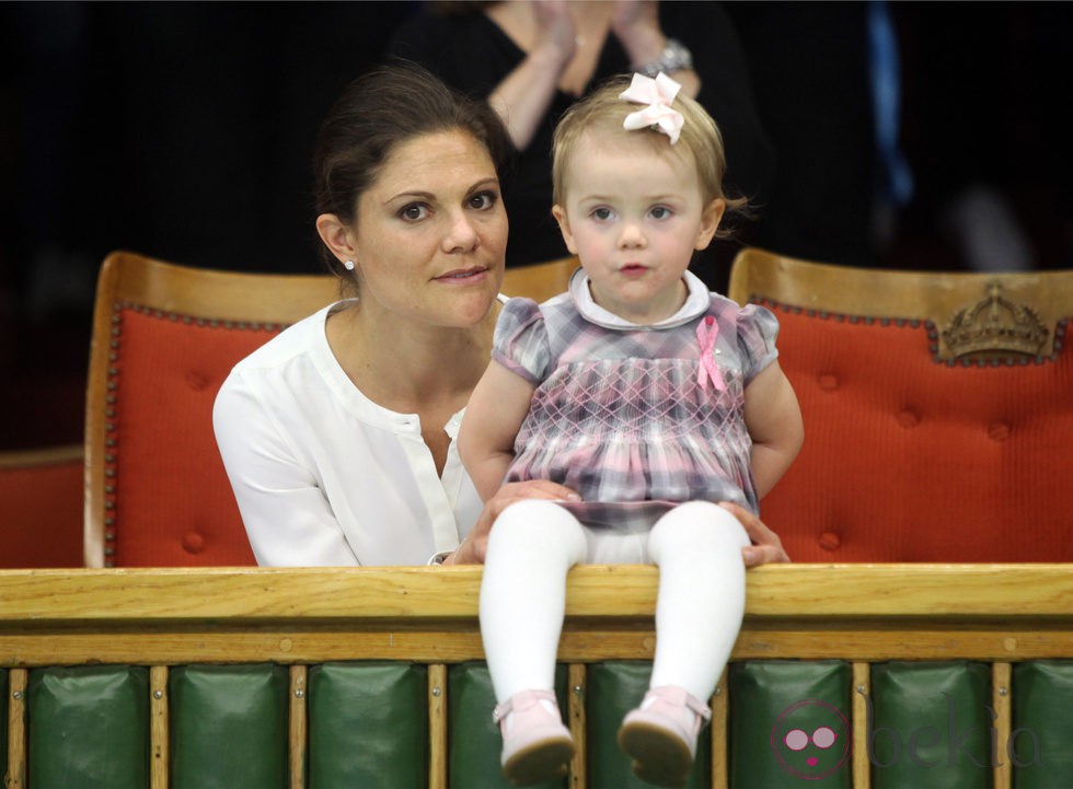 La Princesa Victoria de Suecia con su hija la Princesa Estela de Suecia en la final del Abierto de Estocolmo