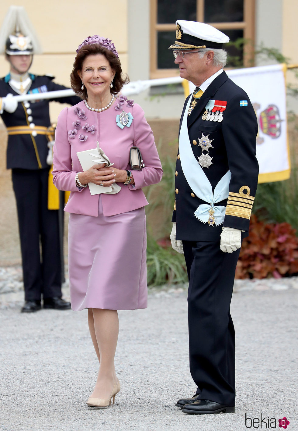 Los Reyes Carlos Gustavo y Silvia de Suecia a las puertas del Palacio de Drottningholm tras asistir al bautizo de su nieto Alejandro de Suecia