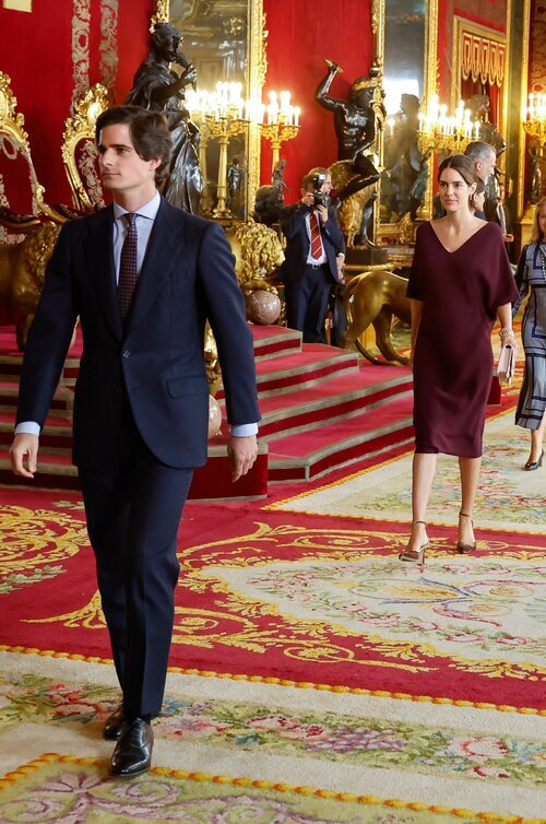 Fernando Fitz-James Stuart y Sofía Palazuelo, Duques de Huéscar, en la recepción en el Palacio Real por la Fiesta Nacional 2022.