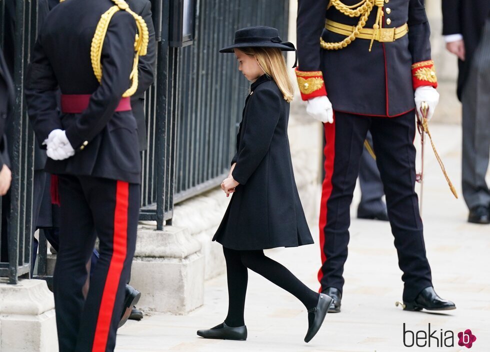 La Princesa Charlotte es fotografiada llegando al funeral de la Reina Isabel II en la Abadía de Westminster junto a su madre.