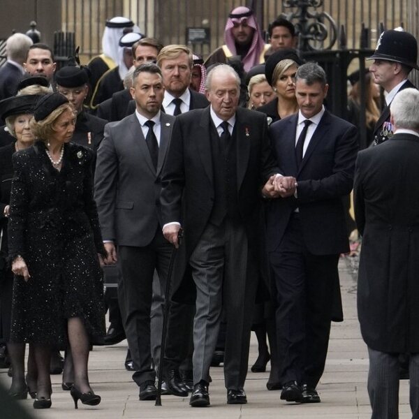 El Rey Juan Carlos y la Reina Sofía son fotografiados llegando al funeral de la Reina Isabel II en la Abadía de Westminster.