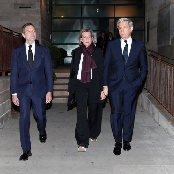 La aristócrata Simoneta Gómez-Acebo con James Costos y Michael Smith en la misa funeral de Plácido Arango celebrada en la Iglesia de los Jerónimos de Madrid.