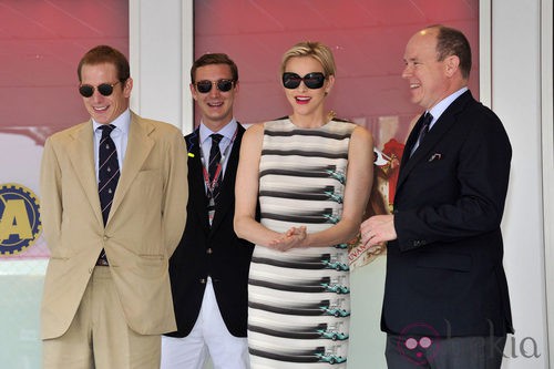 Los Príncipes Alberto y Charlene con los hijos de la Princesa Carolina, Andrea y Pierre Casiraghi, en el Gran Premio de Fórmula 1 de Mónaco.