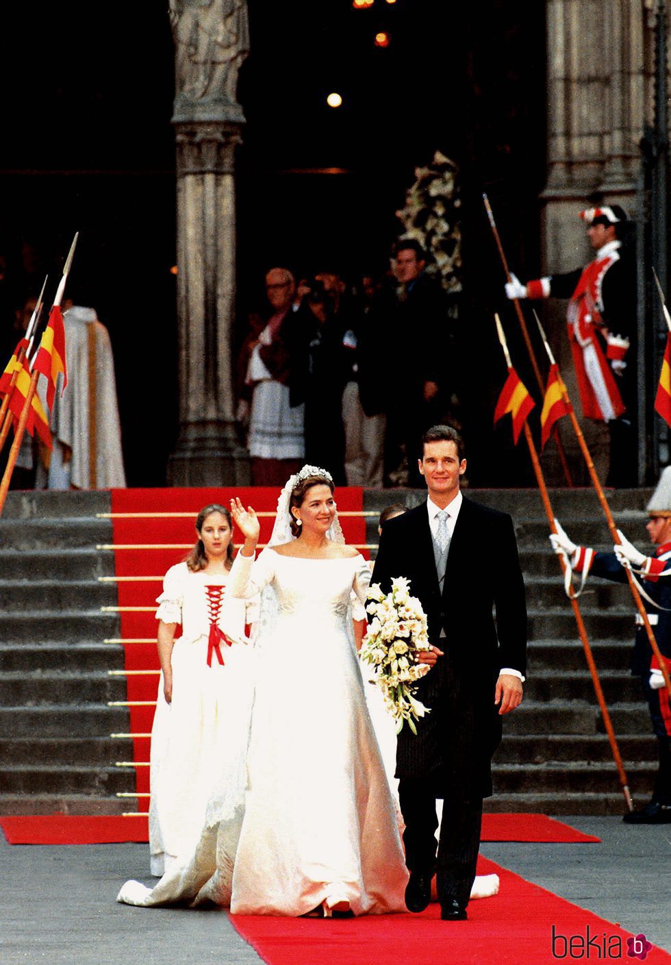 La Infanta Cristina e Iñaki Urdangarin salen de la Catedral de Barcelona tras convertirse en marido y mujer el 4 de octubre de 1997.