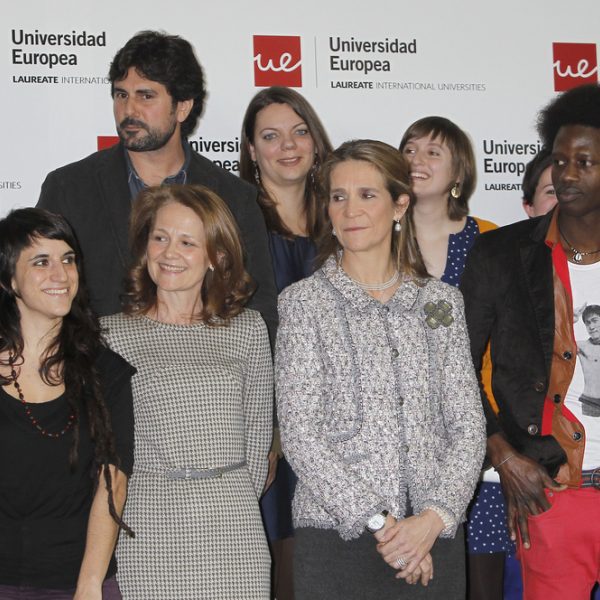 La infanta Elena se realiza un foto de grupo en la entrega de los Premios Jóvenes Emprendedores de la Universidad Europea de Madrid