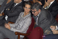 La Duquesa de Lugo y su secretario en la ceremonia de entrega de las distinciones de la Real Orden del Mérito Deportivo.