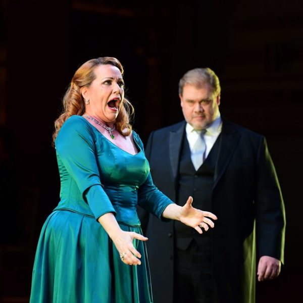 Los actores Emily Magee y Stuart Skelton actuando en la gala por el 70 cumpleaños del Príncipe Carlos de Inglaterra celebrada en el Palacio de Buckingham.