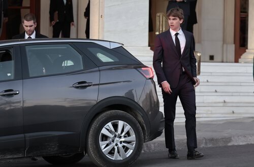 Los hermanos Juan Urdangarin y Miguel Urdangarin tras el funeral de Constantino de Grecia en la Catedral Metropolitana de Atenas.