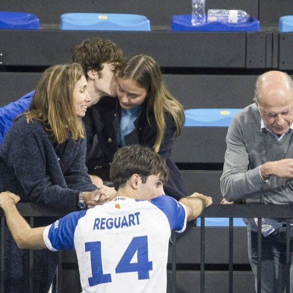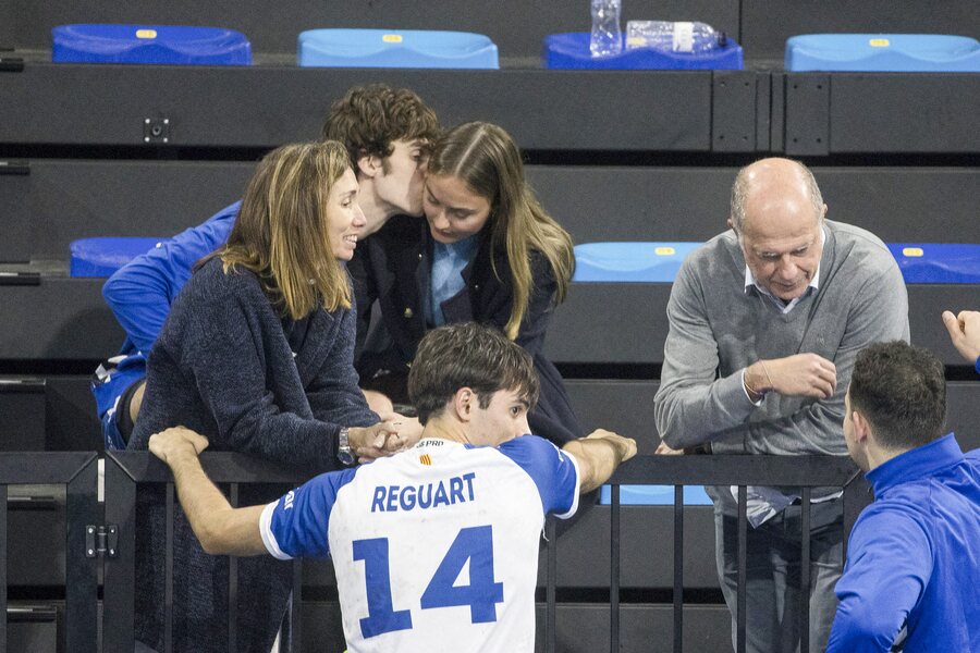 Pablo Urdangarin besa a Johanna Zott en la mejilla tras un partido de balonmano del BM. Granollers Granollers frente al Club Deportivo Balonmano Ciudad Encantada en Granollers.