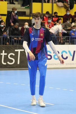 El deportista Pablo Urdangarin durante el partido de balonmano que enfrentó al Balonmano Nava contra el Barça B.