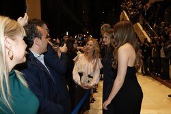 La Princesa Leonor y la Infanta Sofía se hacen fotos con la gente allí presente antes del Concierto Premios Princesa de Asturias 2025.