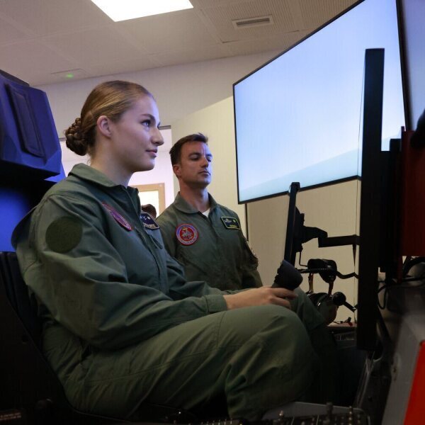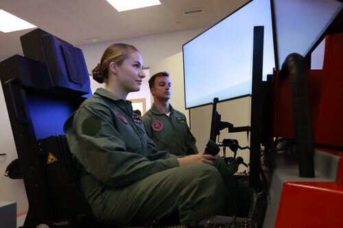La Princesa Leonor es fotografiada en un simulador a su llegada a la Academia General del Aire y del Espacio en San Javier.