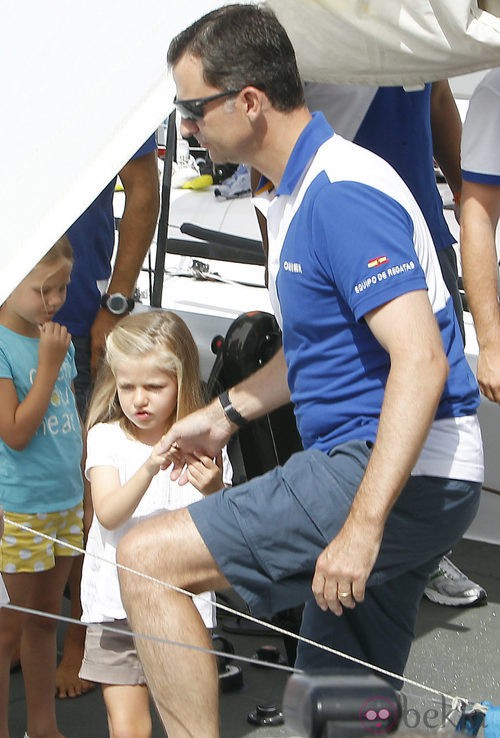 La Infanta Leonor coge de la mano al Príncipe Felipe en el segundo día de regatas 2011.