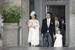 Los príncipes de Suecia, Victoria y Daniel, con su hijos Estelle y Oscar en el bautizo de este último.