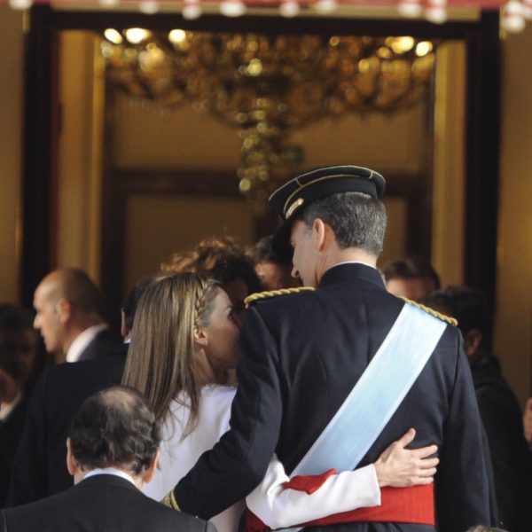 Los Reyes Felipe y Letizia abrazados en el interior del Palacio Real durante la proclamación de Felipe VI