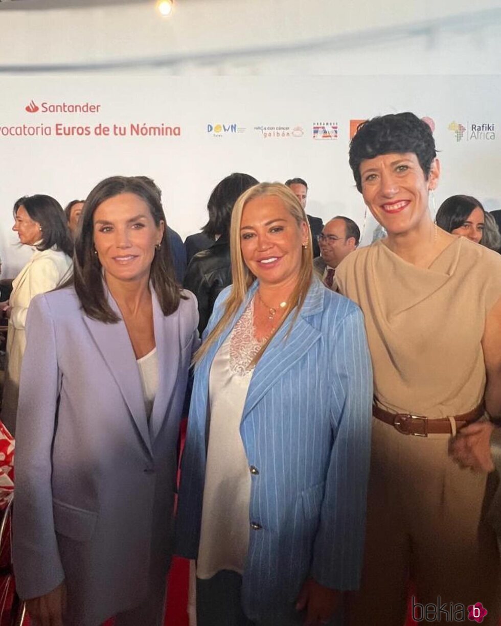 La Reina Letizia es fotografiada posando junto a Belén Esteban y la Ministra Elma Saiz en un acto del Banco Santander.