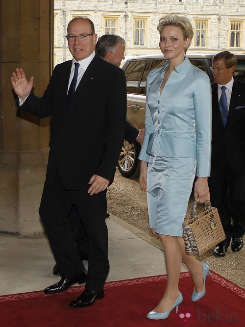 Los Príncipes Alberto y Charlene de Mónaco en el almuerzo del Jubileo de Diamante de la Reina Isabel en Windsor.
