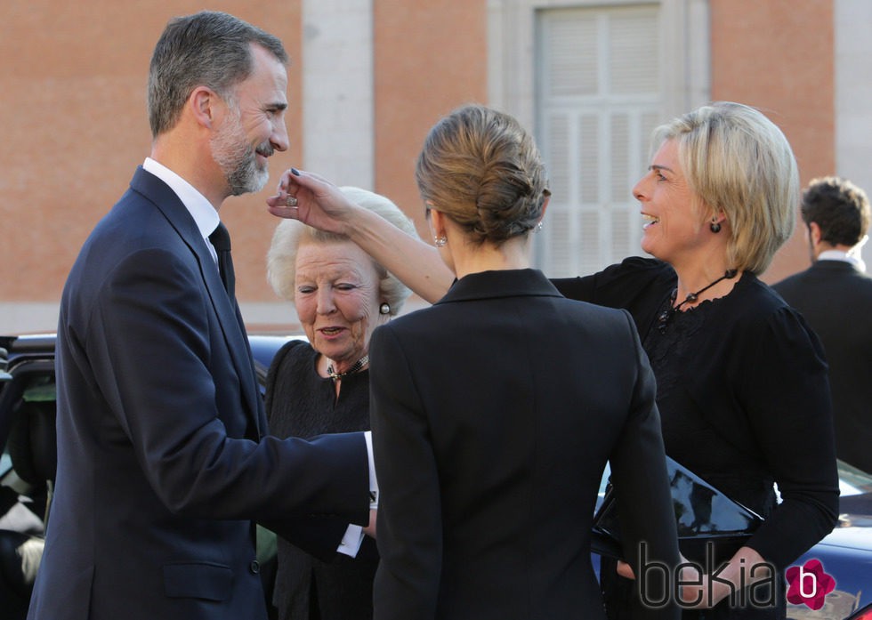 Los Reyes de España con la Princesa Laurentien de Países Bajos en el funeral del Príncipe Kardam de Bulgaria en la Iglesia de Los Jerónimos de Madrid.