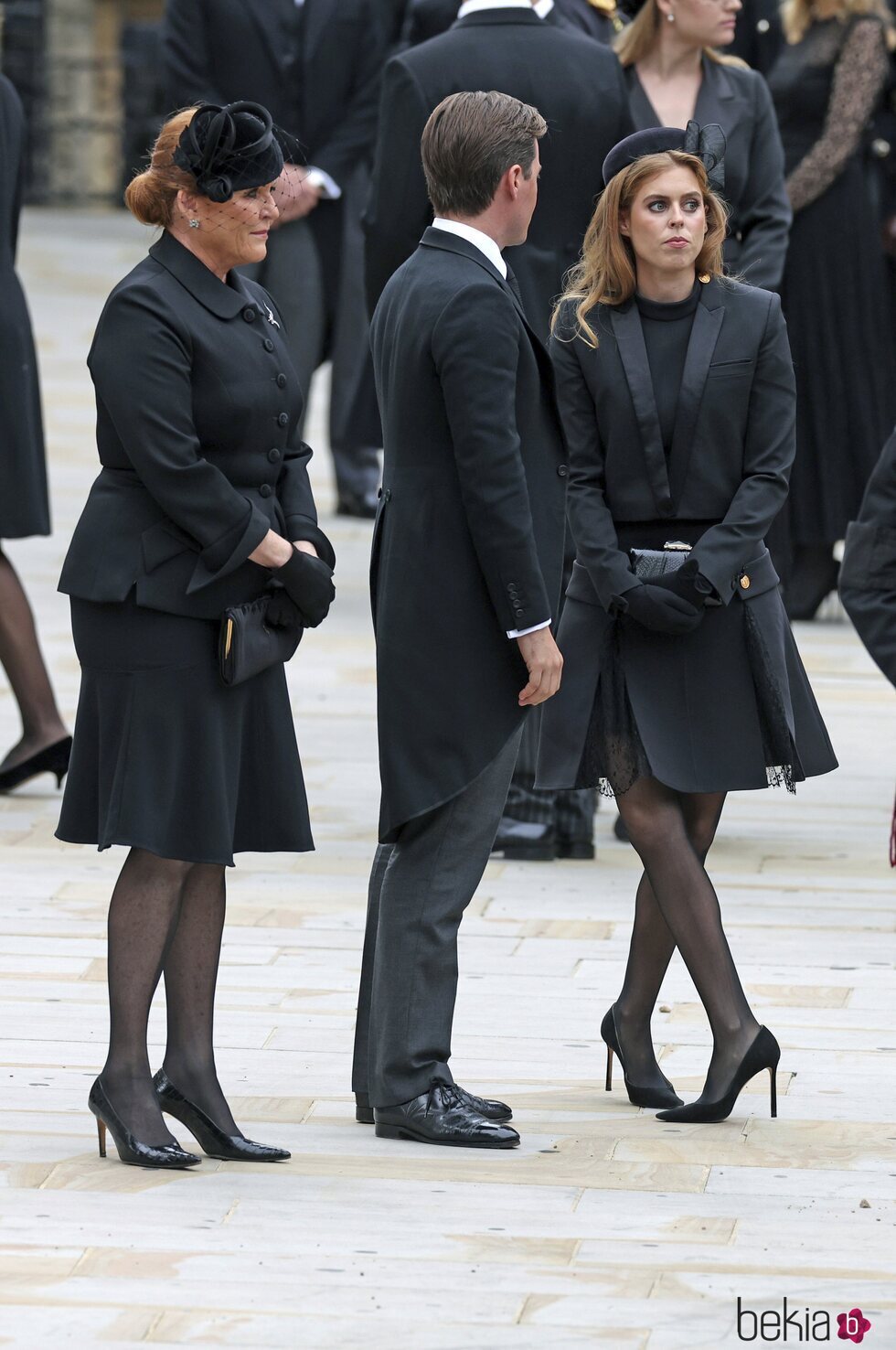 Beatriz de York, Edoardo Mapelli y Sarah Ferguson en el funeral de la Reina Isabel II en la Abadía de Westminster.