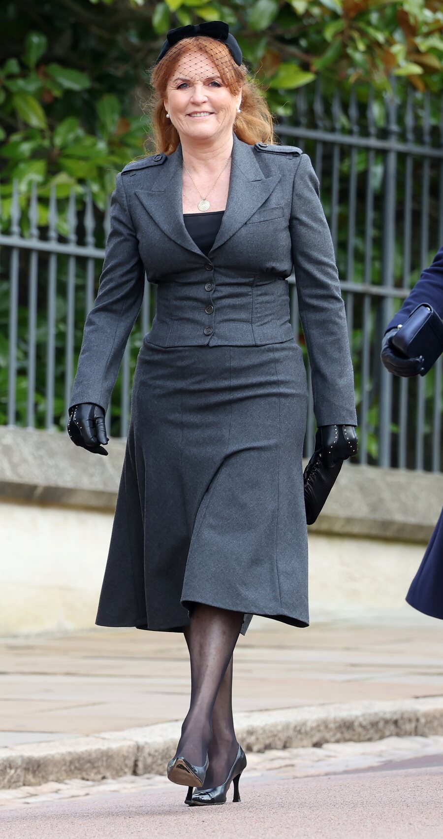 La Duquesa de York a su llegada al homenaje a Constantino de Grecia en la Capilla de St George de Windsor Castle.