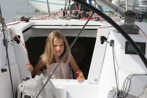 La hija menor de los Reyes de España en el navío Aifos en el Náutico de Palma durante sus vacaciones en Mallorca.
