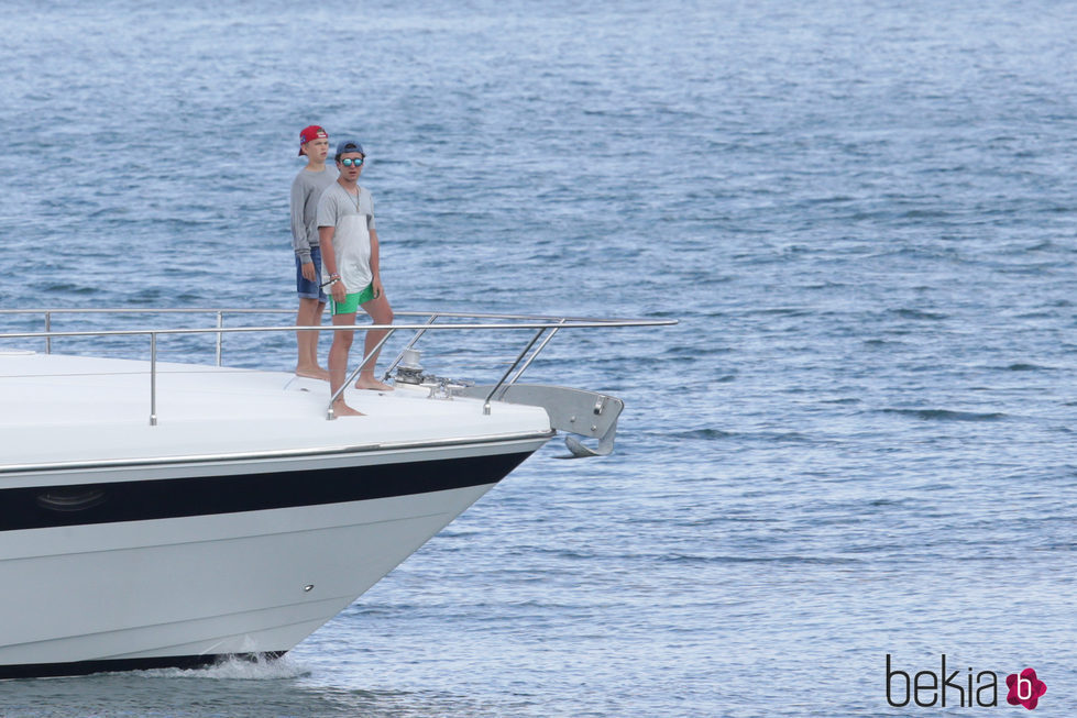 Los primos reales Miguel Urdangarín y Froilán de Marichalar a bordo de un yate navegando durante sus vacaciones en Palma de Mallorca