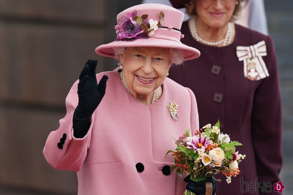 La Reina Isabel tras la ceremonia de Apertura del Parlamento de Gales en Cardiff el 14 de octubre de 2021.