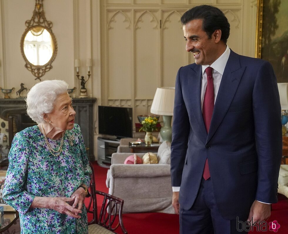La Reina Isabel y el Jeque Tamim Bin Hamad Al Thani, Emir de Catar, durante la audiencia que mantuvieron en el Castillo de Windsor.