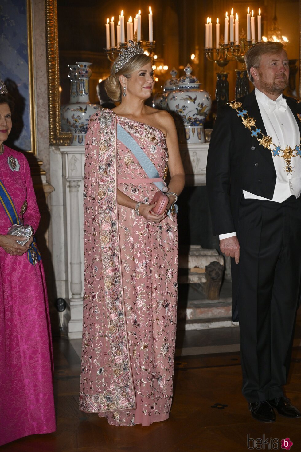 La Reina Máxima luce la tiara Estuardo en la cena de gala ofrecida por los Reyes de Suecia con motivo de la Visita de Estado al país escandinavo.