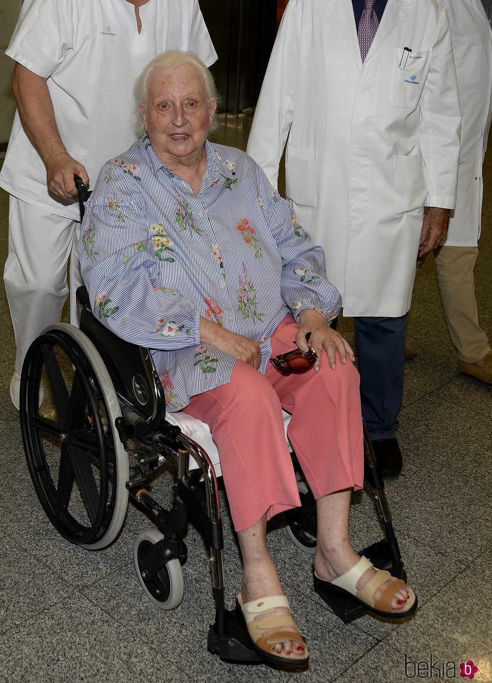 La Infanta Pilar tras recibir el alta hospitalaria en la clínica Rotger de Palma después de pasar 3 días ingresada.