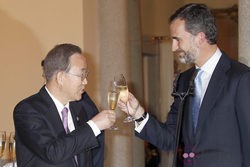 El Príncipe Felipe brindando con el secretario general de Naciones Unidas Ban Ki-Moon en una recepción celebrada en El Pardo