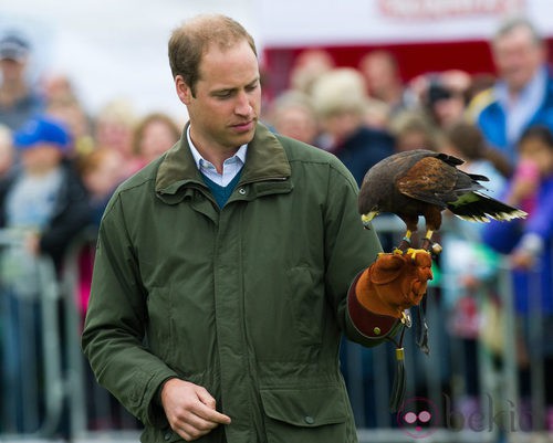 El Príncipe Guillermo de Inglaterra con un halcón posado en su brazo en su visita a la Feria de Anglesey