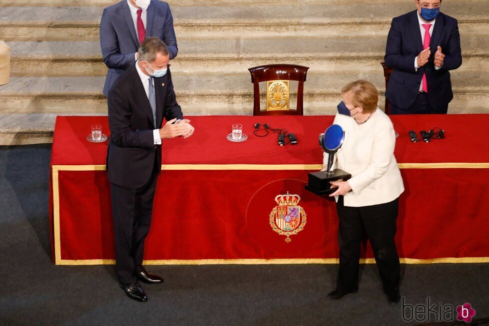 El Rey Felipe le ha hecho entrega a Angela Merkel del Premio Europeo Carlos V en la XIV Edición celebrada en el Monasterio de Yuste.