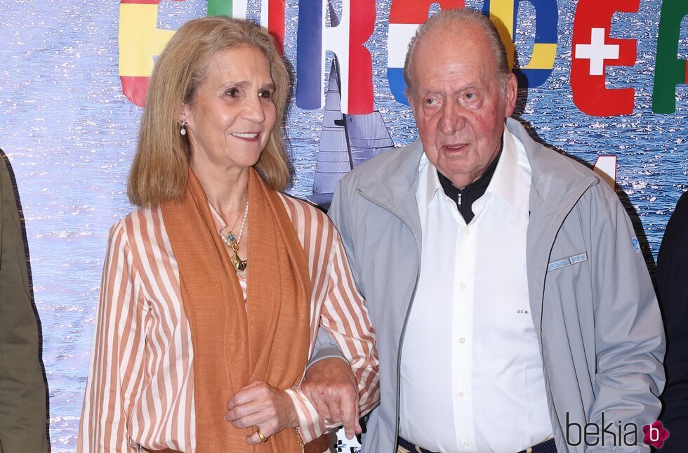 La Infanta Elena y el Rey Juan Carlos posando juntos en la cena de clausura del Trofeo Xacobeo en Sanxenxo tras varios días de regatas.