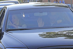 Los Reyes de España, Felipe VI y Letizia, llevando a sus hijas al colegio en coche en su primer día del curso 2016/2017.