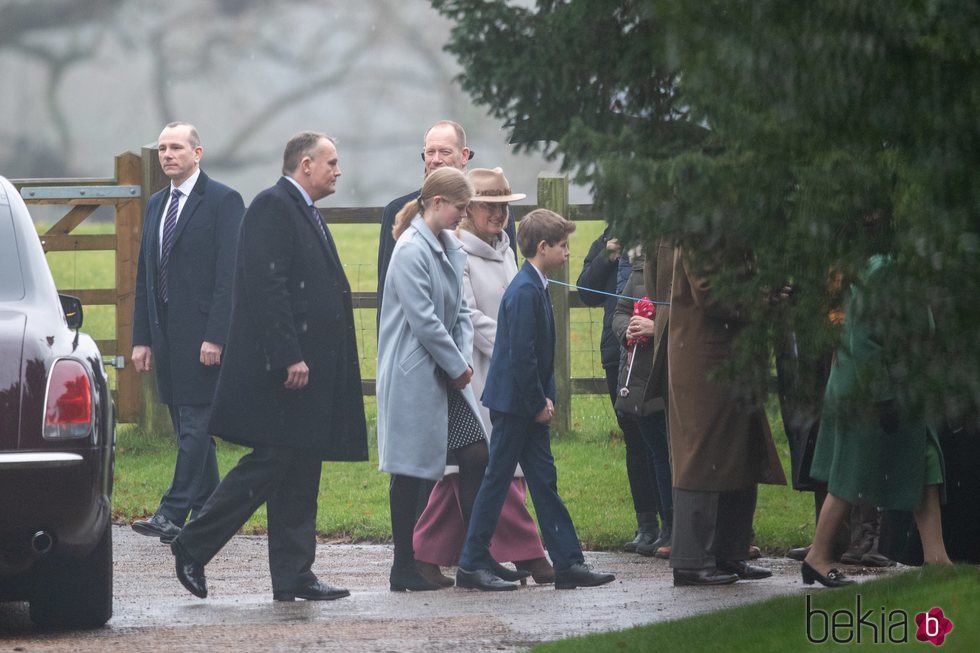 Sophie Rhys-Jones junto a sus hijos, Lady Louise y James Mountbatten-Windsor acudiendo a misa en la Iglesia Santa María Magdalena.