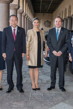 La Princesa Heredera posa con el secretario general de la ONU en el que ha sido su primer acto oficial tras haber sido madre del Príncipe Oscar de Suecia.