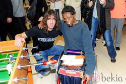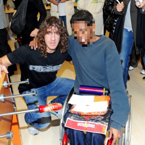 El futbolista Carles Puyol visita a los niños enfermos en un hospital de Barcelona
