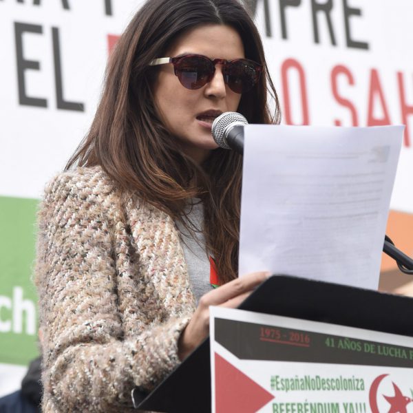 Clara Lago asistió a la manifestación en favor del pueblo saharaui en Madrid, donde leyó el manifiesto final frente a la sede del Ministerio de Asuntos Exteriores.