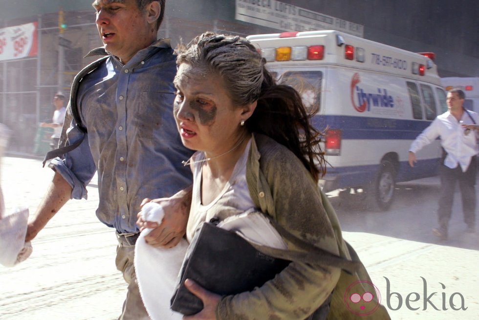 11-S: ciudadanos huyen aterrorizados del World Trade Center tras el atentado mientras al ambulancias se dirigen al epicentro del atentado.